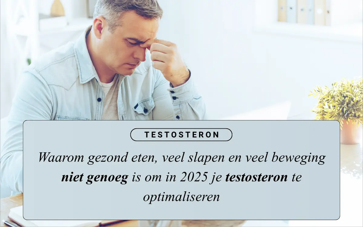 Als je alles juist doet en je nog steeds slecht voelt: dat is niet raar, en je bent niet alleen. Een gezonde leefstijl is namelijk cruciaal om je huidige testosteronniveau te onderhouden… Maar in de moderne wereld is dit vaak niet genoeg meer om het testosteronniveau te optimaliseren.