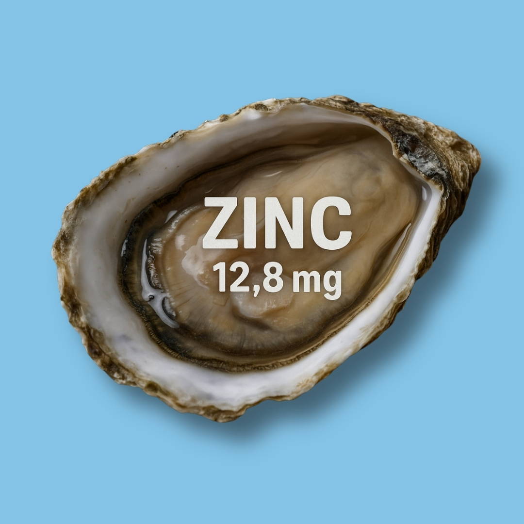 Oesters zijn geen gewone zeevruchten - ze zijn de absolute kampioen als het gaat om biobeschikbaar zink. Eén portie oesters bevat tot 1200% van je dagelijkse zinkbehoefte…