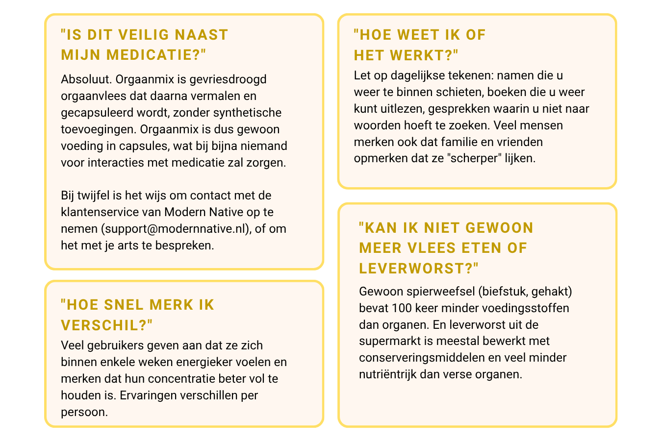 Daarom heeft Modern Native een praktische oplossing ontwikkeld: Orgaanmix capsules die alle voordelen van traditioneel orgaanvlees leveren in een gemakkelijk te gebruiken vorm.