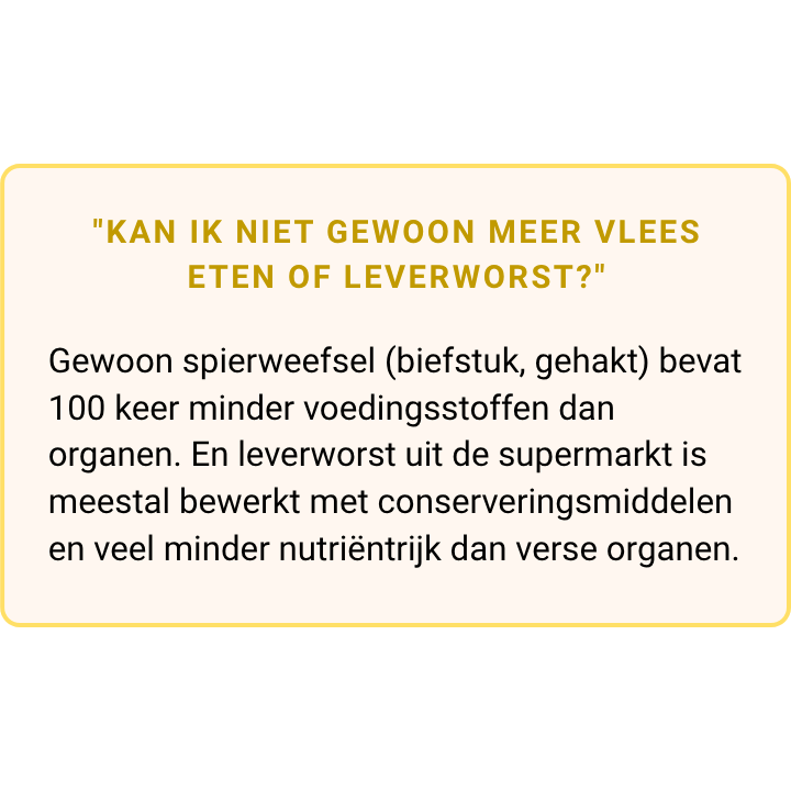 Zo wordt het eenvoudig om te ervaren wat natuurlijke voedingsstoffen uit orgaanvlees voor jou kunnen betekenen.