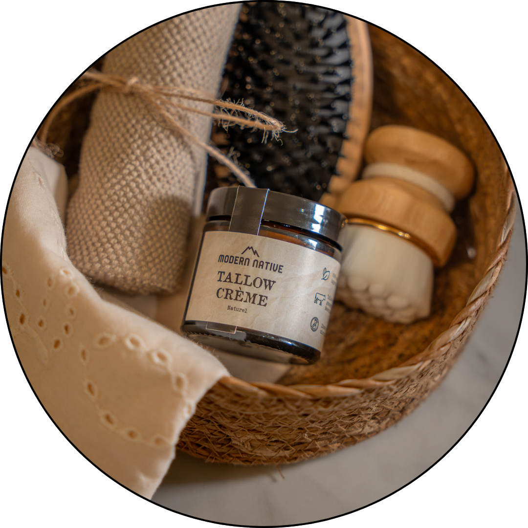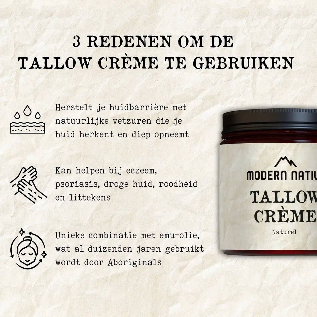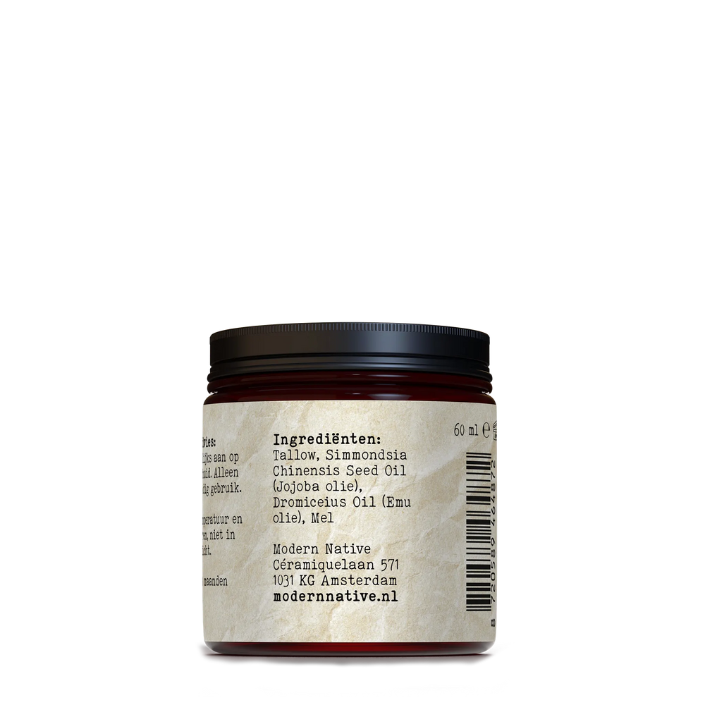 Ontdek deze unieke Modern Native Tallow huidcrème, speciaal samengesteld om je huid diep te voeden en te herstellen met ingrediënten die je huidbarrière van nature herkent: