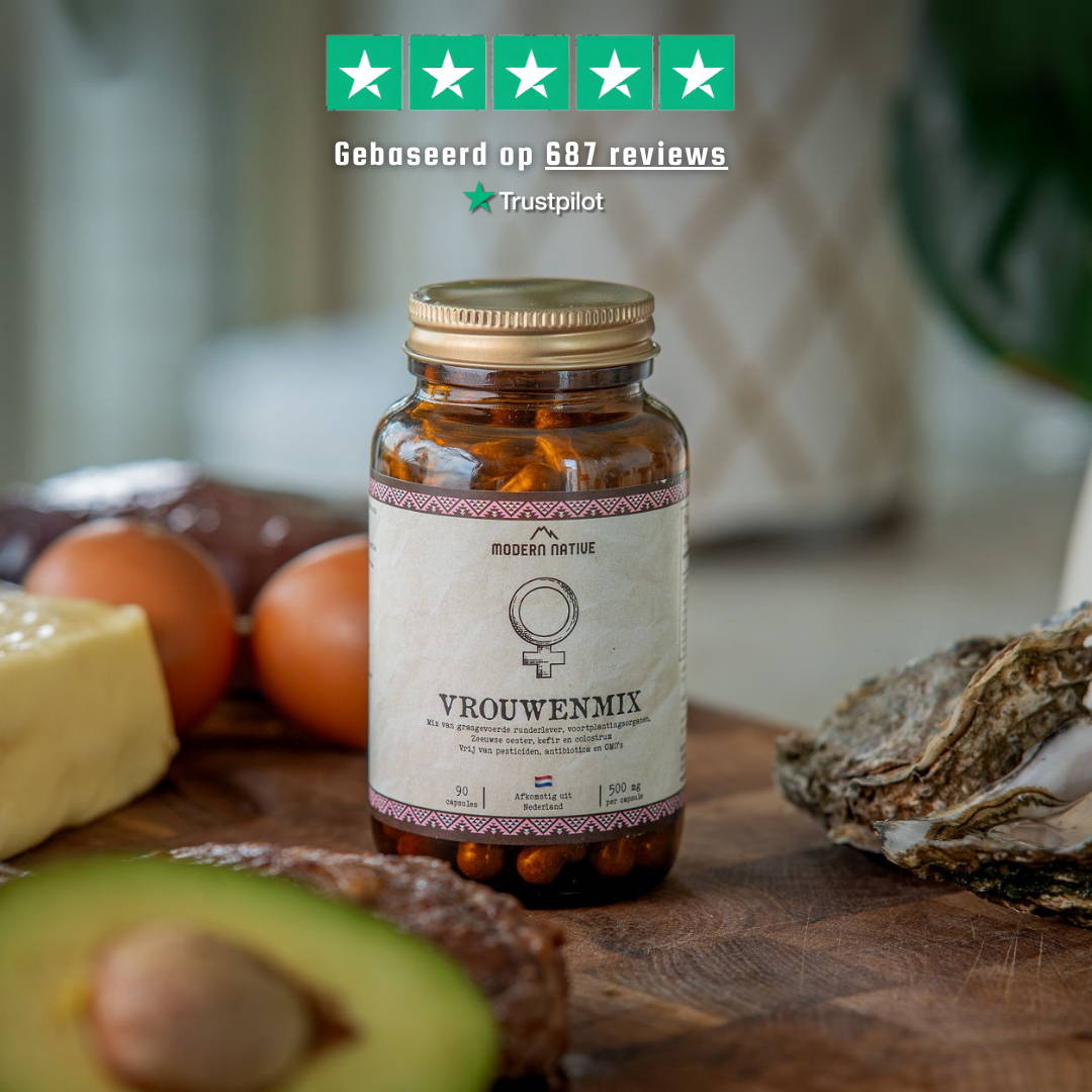 Onze Vrouwenmix bevat runderlever, oesters, colostrum, oerkefir en rundereierstokken, -eileiders en -baarmoeder. Zowel runderlever als oesters zijn uitstekende bronnen van essentiële voedingsstoffen. Deze combinatie biedt een breed spectrum aan nutriënten, waaronder vitamine B12, folaat, (heem)ijzer, zink en verschillende B-vitamines.