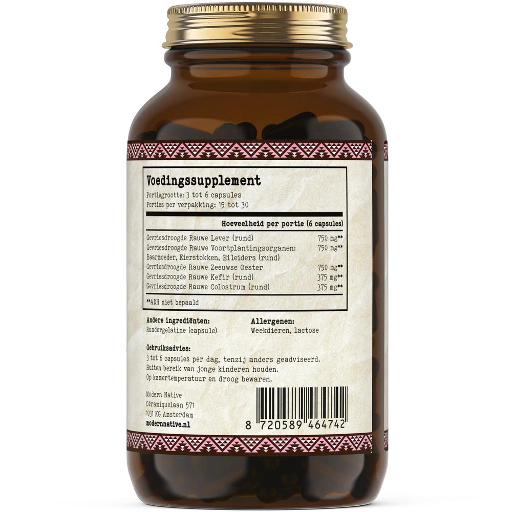 25% gevriesdroogde rauwe voortplantingsorganen: baarmoeder, eierstokken en eileiders (rund)
