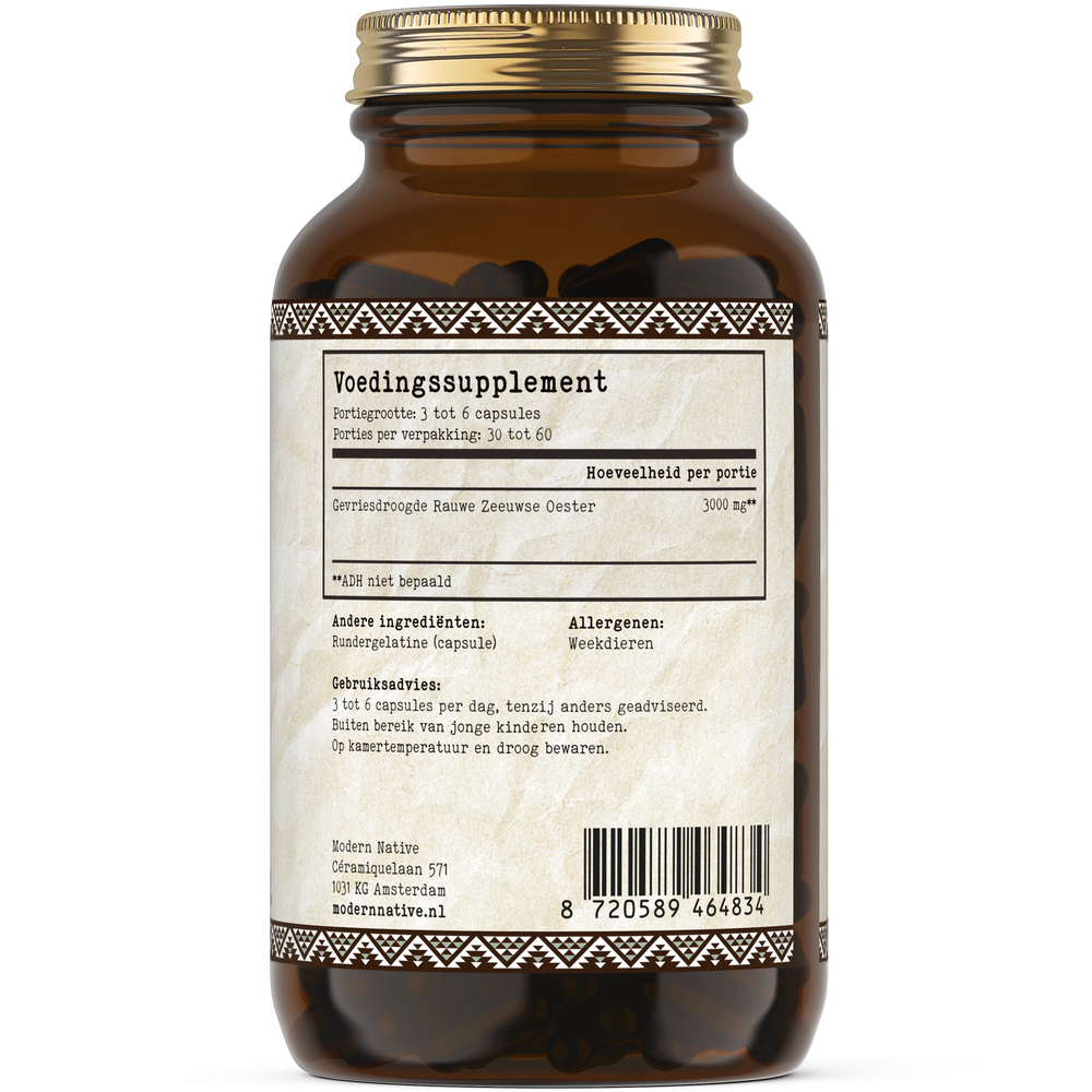 6 capsules komen ongeveer overeen met 15 gram verse oesters.