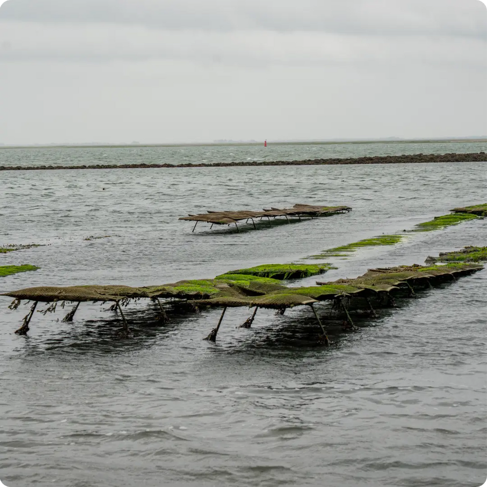 De oestertafel is speciaal ontworpen om oesters te laten groeien in hun natuurlijke omgeving, zodat de oesters de getijden kunnen volgen.